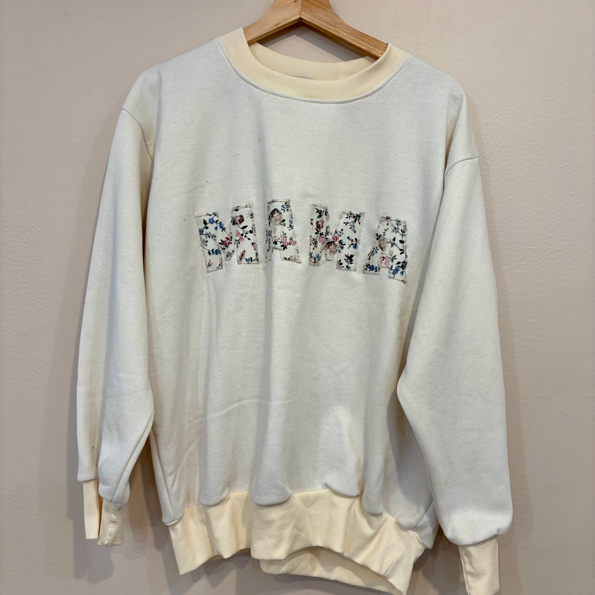 Confort et douceur pour les mamans d’exception ✨ Ce chandail ivoire « MAMA » est fait à la main au Québec, dans un tissu ouaté ultra doux à l’intérieur. Un essentiel douillet à porter fièrement, seul ou avec sa mini.
