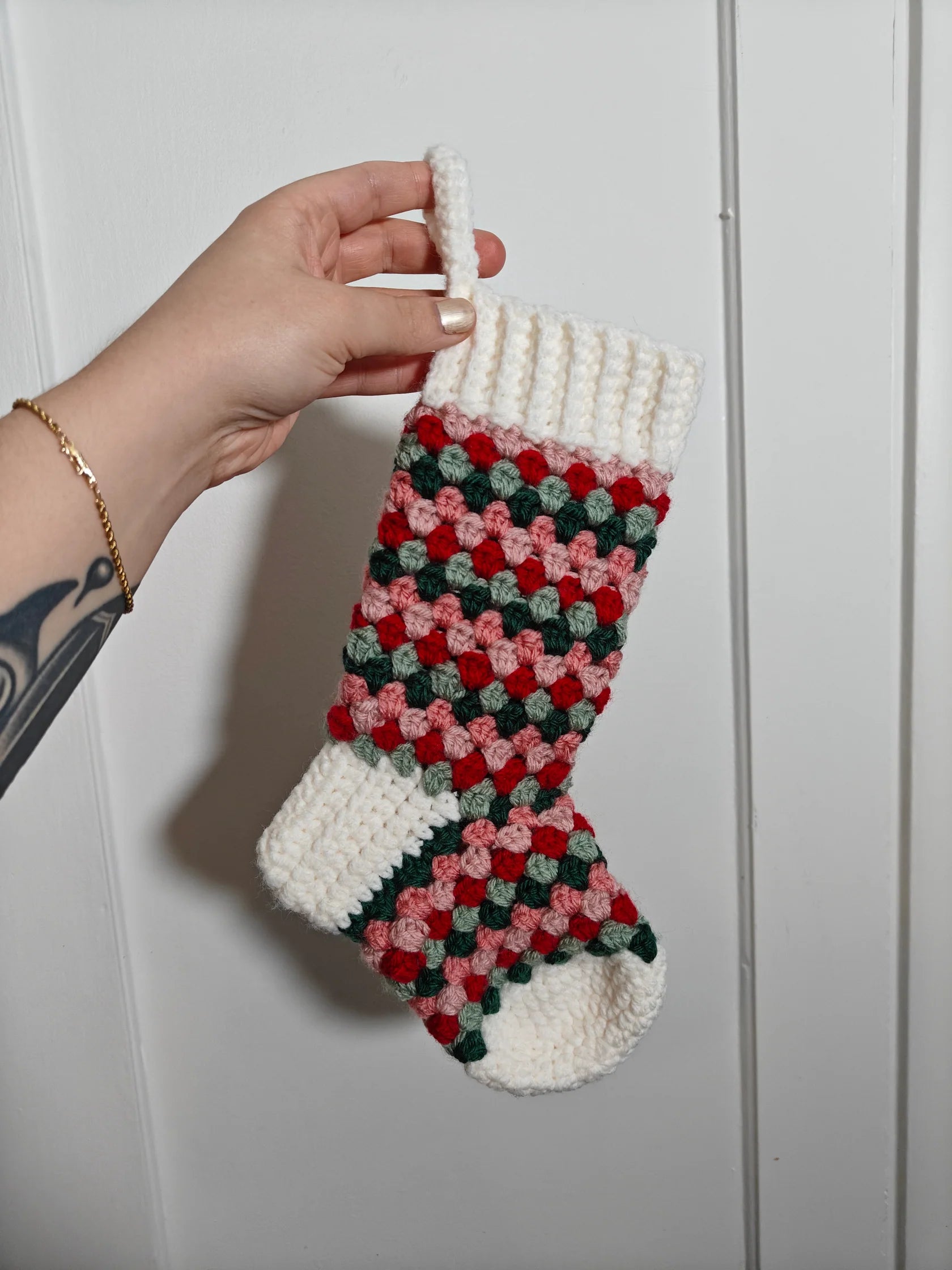 Ajoutez une touche artisanale à votre décoration des fêtes avec cette chaussette de Noël au crochet. 🎄