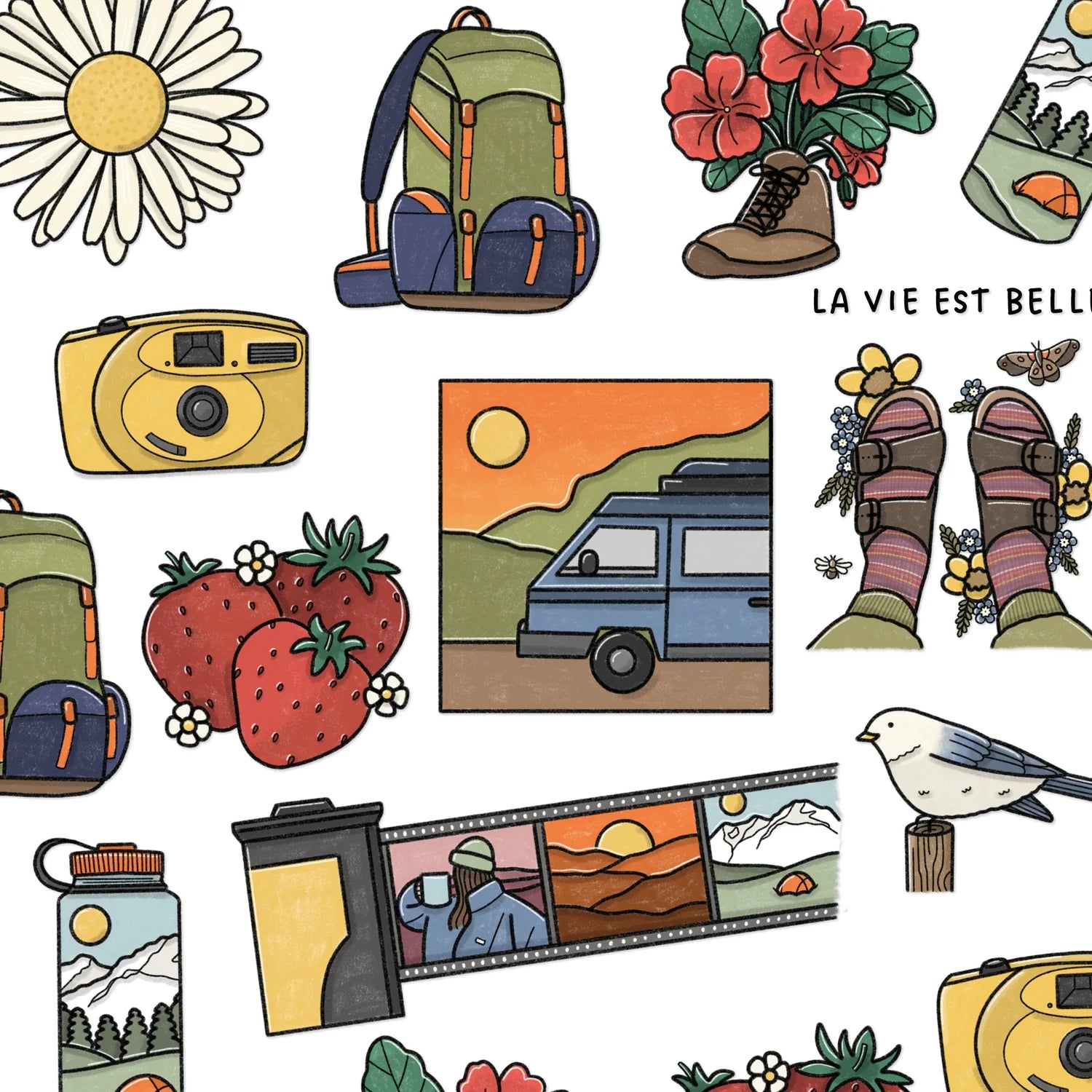 Collants créés pour ajouter de la couleur à ton quotidien. Inspirés du plein air, du voyage, de la nature et des petites choses simples qui font du bien.