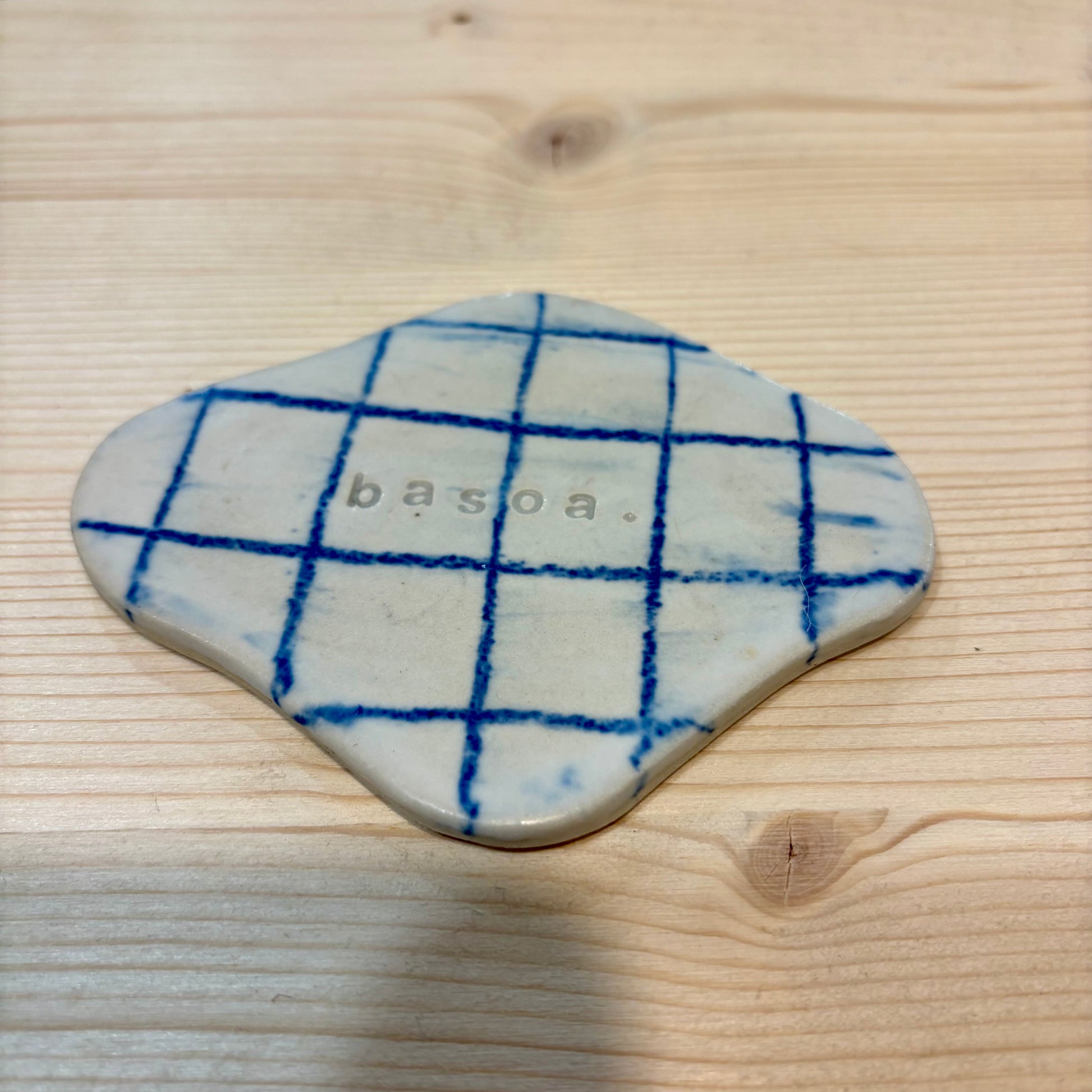 Mini plateau rayé en céramique artisanale, façonné et émaillé à la main. Idéal pour bijoux.