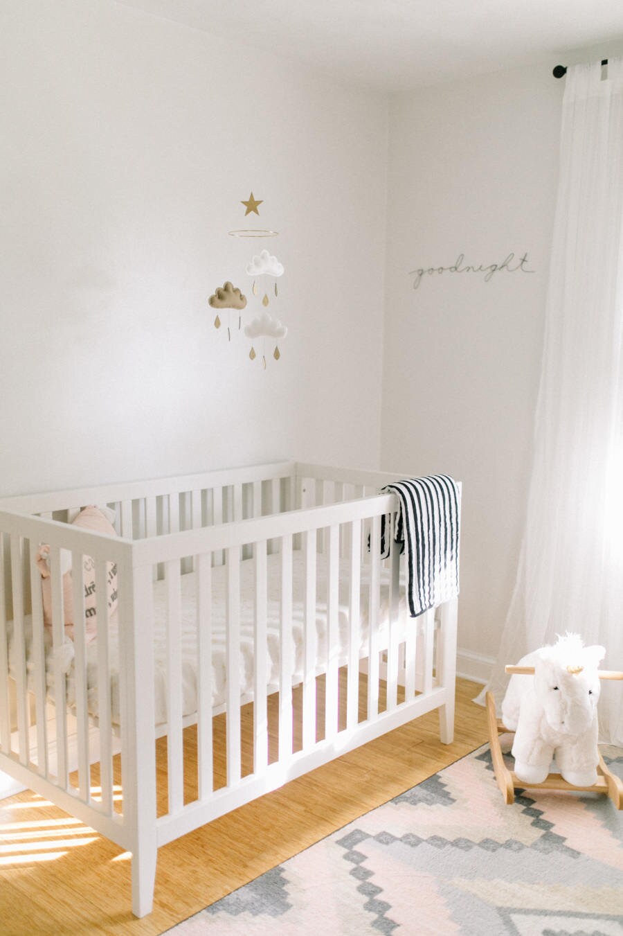 Très simples à installer, les mobiles nuage de The Butter Flying s'accrochent au plafond en guise de mobile au-dessus d'un lit d'enfant...