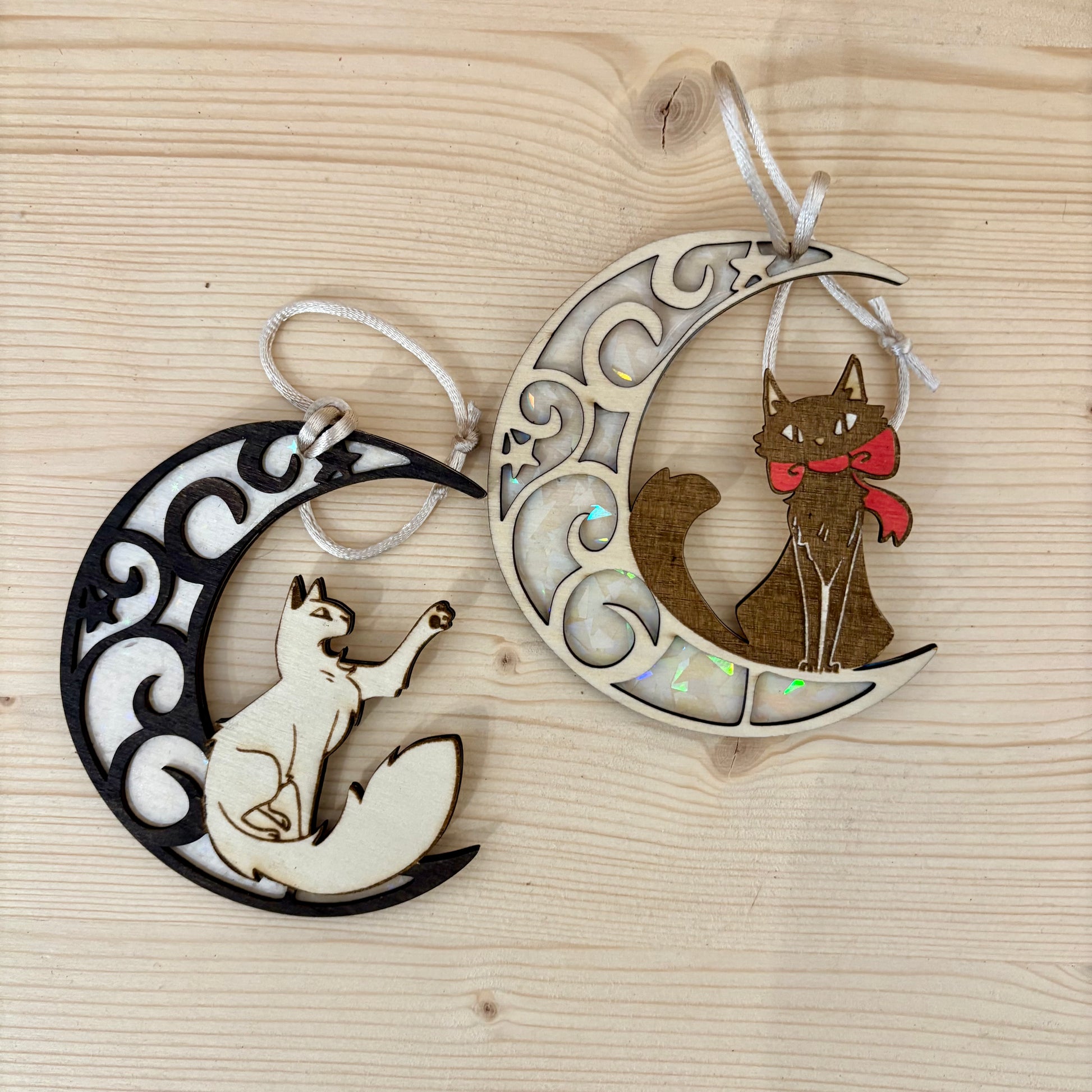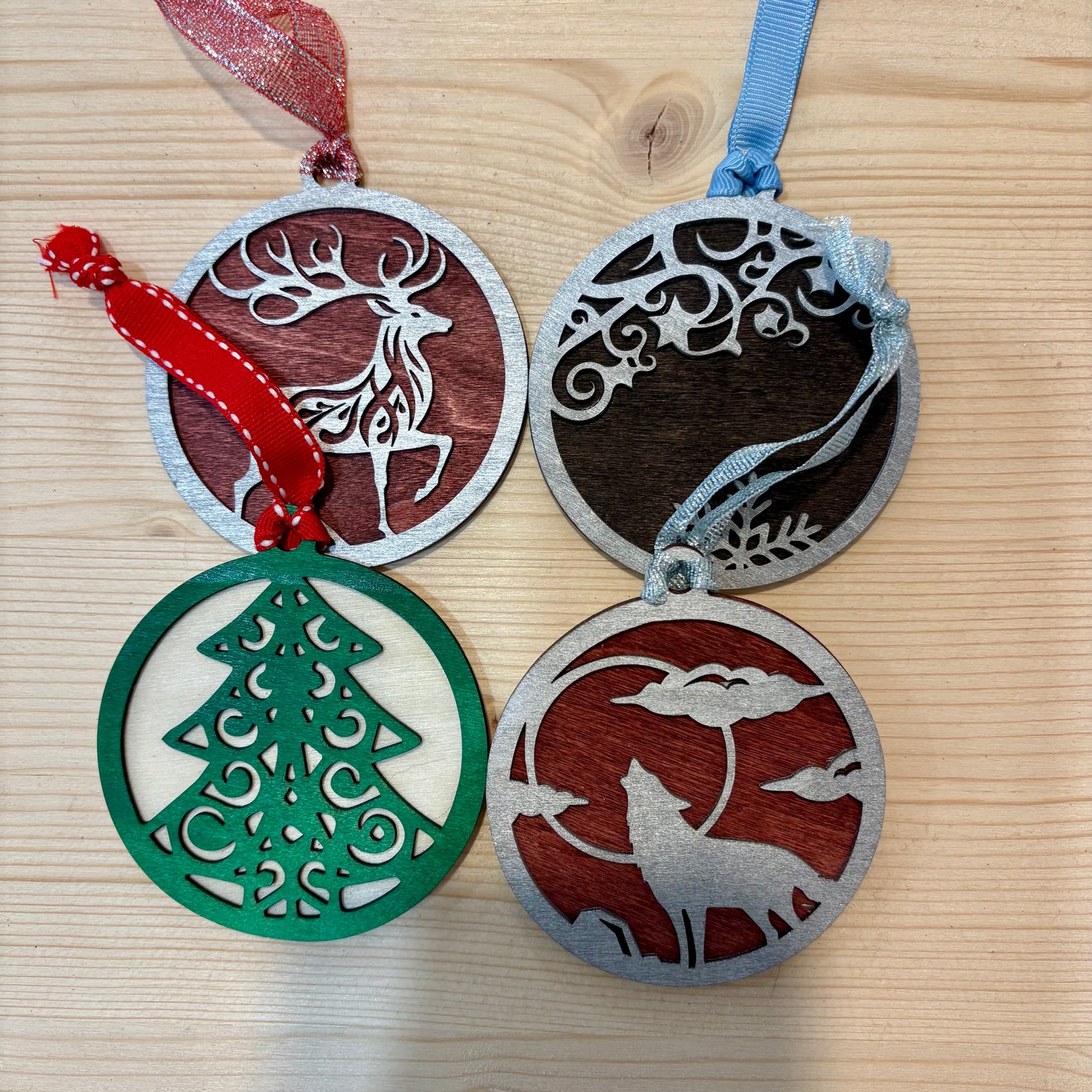Ornement de Noël en bois, imaginés et fabriqués par les artisans Ben&Phi Créa. À accrocher au sapin ou ailleurs, ils apportent une touche chaleureuse et créative à vos décorations de fêtes.