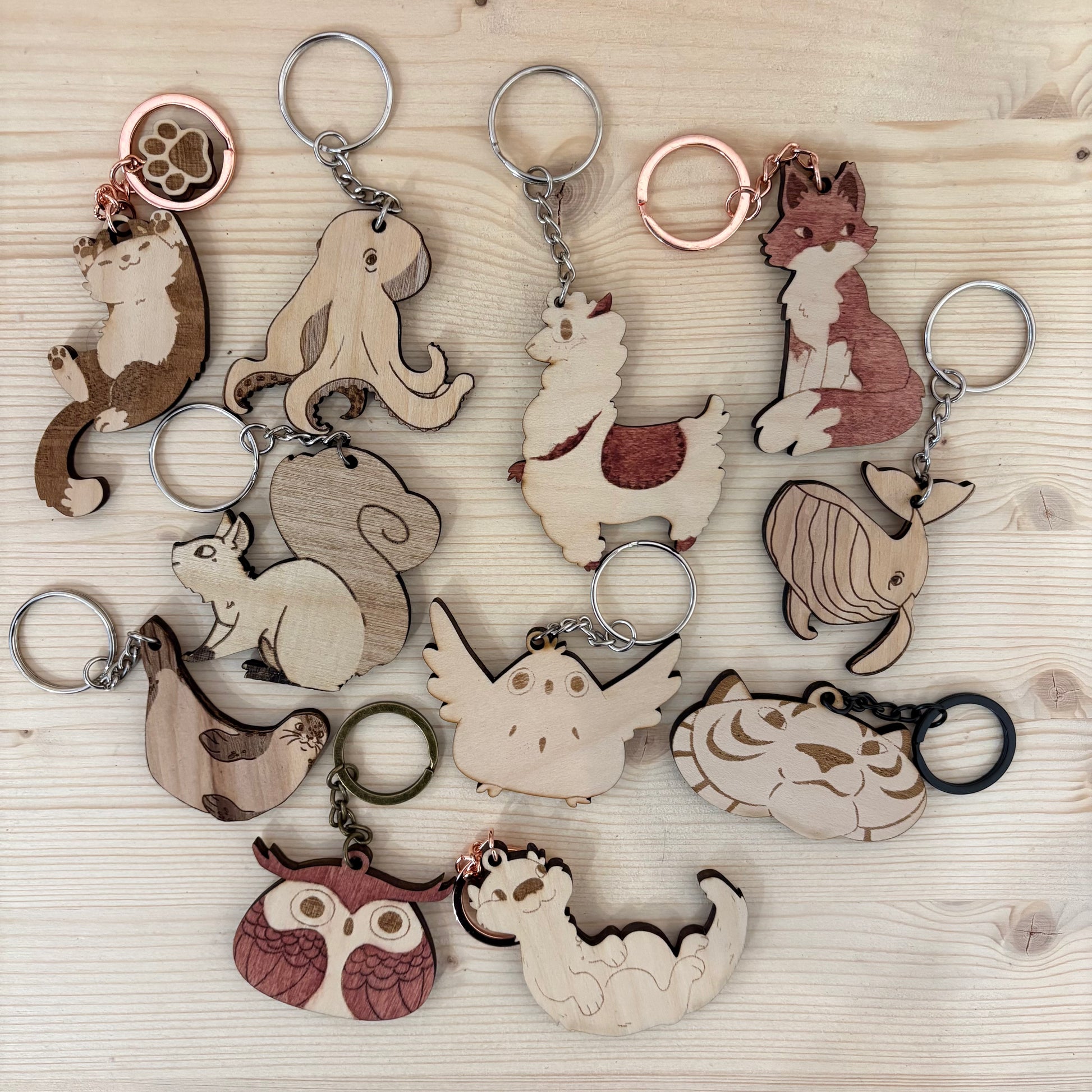 Porte-clés en bois illustrés, imaginés et fabriqués par Ben&Phi Créa. Solides et pratiques, ils t’accompagnent au quotidien avec une touche fun et originale.