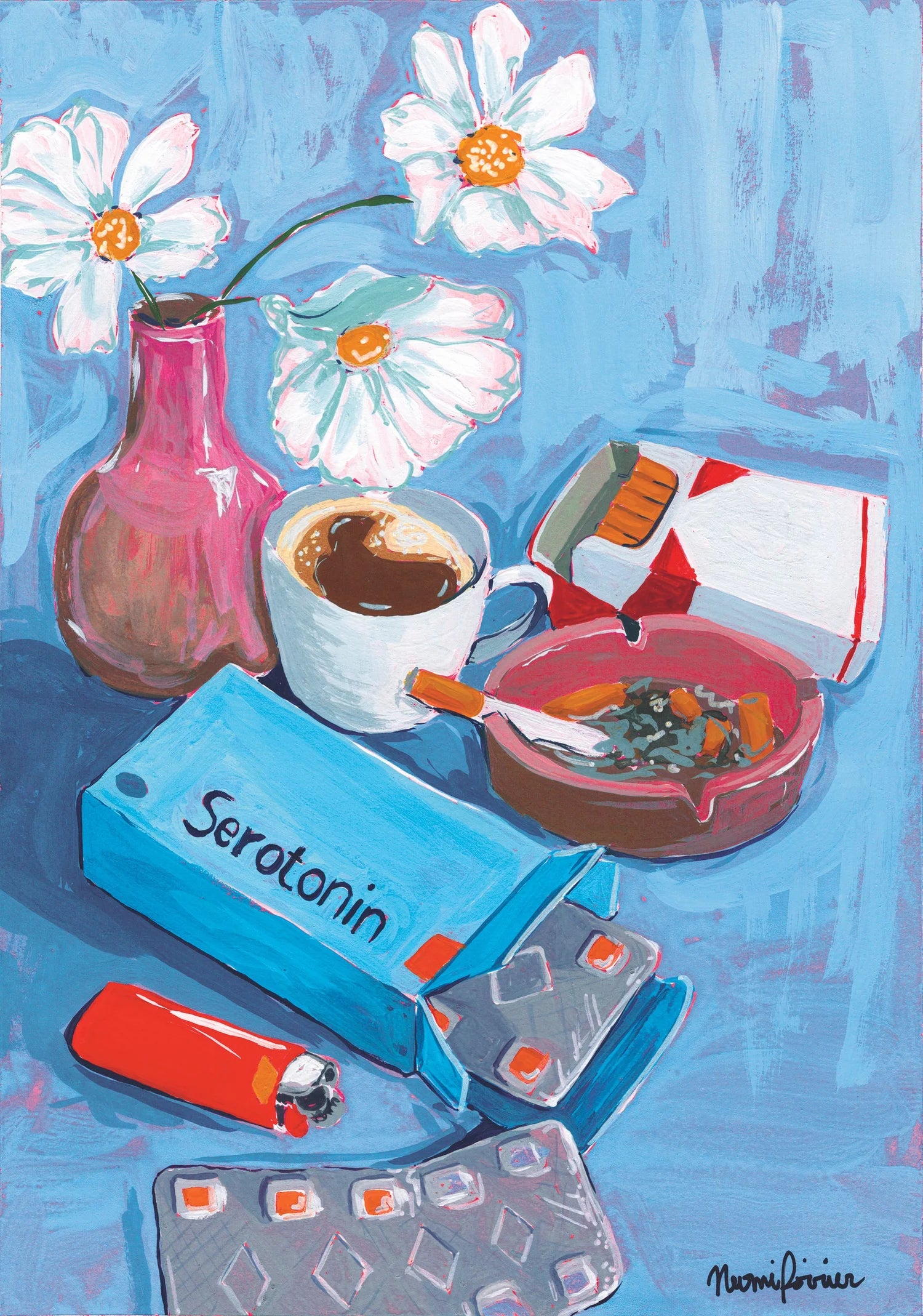 Carte de souhaits avec une reproduction d'une oeuvre de l'artiste visuelle Naomi Poirier sur la couverture. Elle est imprimée sur du papier mat velouté 230gsm (60lb). L'interieur de la carte est vierge et elle vient avec une enveloppe assortie.
